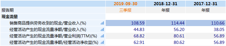 这项指标持续大于总营业收入的公司是好公司,或者把两者做成比值,用销售商品、提供劳务收到的现金/总营业收入,只要这个指标持续大于100%,就说明公司的现金回收能力很强。