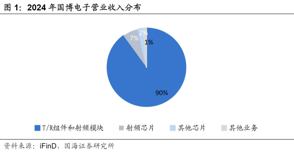 公司建立了以化合物半导体为核心的技术体系和系列化产品布局,产品覆盖射频芯片、模块、组件。在高密度集成领域,公司基于设计、工艺和测试三大平台,开发了T/R组件、射频模块等产品;在射频芯片领域,公司基于核心技术开发了射频放大类芯片、射频控制类芯片等产品。T/R组件和射频模块业务与射频芯片业务相辅相成、相互协同,射频芯片是T/R组件、射频模块的重要组成部分。据iFinD,2024年公司营业收入中90%为T/R组件和射频模块,7%为射频芯片,3%为其他业务。