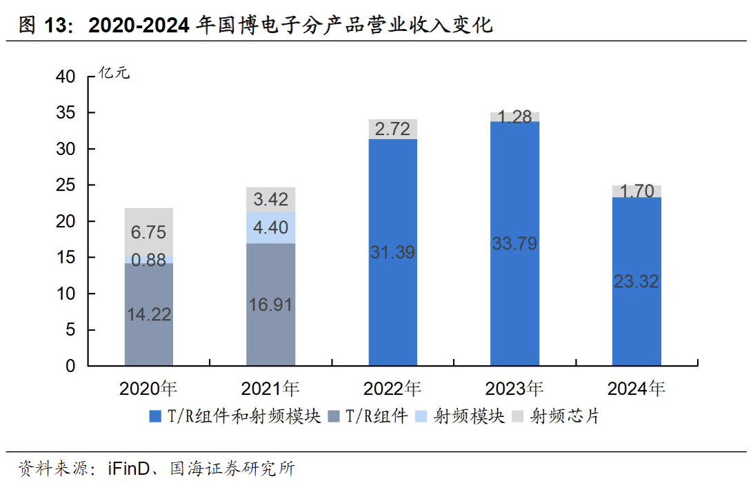 1.国博电子主要包括有源相控阵T/R组件、射频模块及组件两大业务。有源相控阵T/R组件是相控阵雷达的核心部件,下游以机载、船载、舰载等特种领域为主,公司市占率领先;随着近两年商业航天发展,公司T/R组件业务逐步拓展至星载领域,有望为公司孕育第二成长曲线。射频模块及组件主要应用于民用通信市场,包括基站和终端两大方向,基站业务过去受益于5G建设有较好的增长,终端业务为新兴场景,主要为手机、无人机等。
