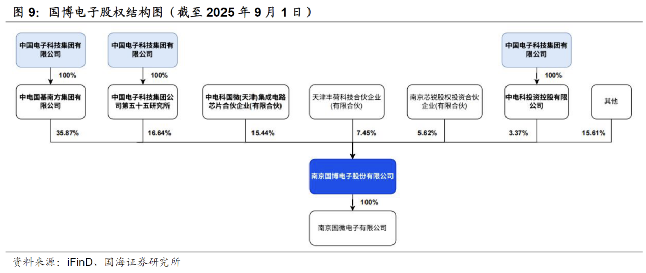 股东结构:实控人为中国电科。据iFinD最新数据,公司直接控股股东为国基南方,持有公司35.87%的股份,中国电科五十五所持有公司16.64%的股份,中电科国微持有公司15.44%的股份。中国电科通过国基南方、中国电科五十五所和中电科投资间接控制公司55.88%的股份,为公司实控人。据公司招股书,公司董事长梅滨毕业于成都电讯工程学院(现电子科技大学),本科学历,研究员级高级工程师,曾任中国电科五十五所工程师、研究所副所长等职位,现任研究所所长。公司有一家控股子公司南京国微电子有限公司,原为中国电科五十五所微系统事业部相关资产承接主体,目前主要从事射频集成电路设计。