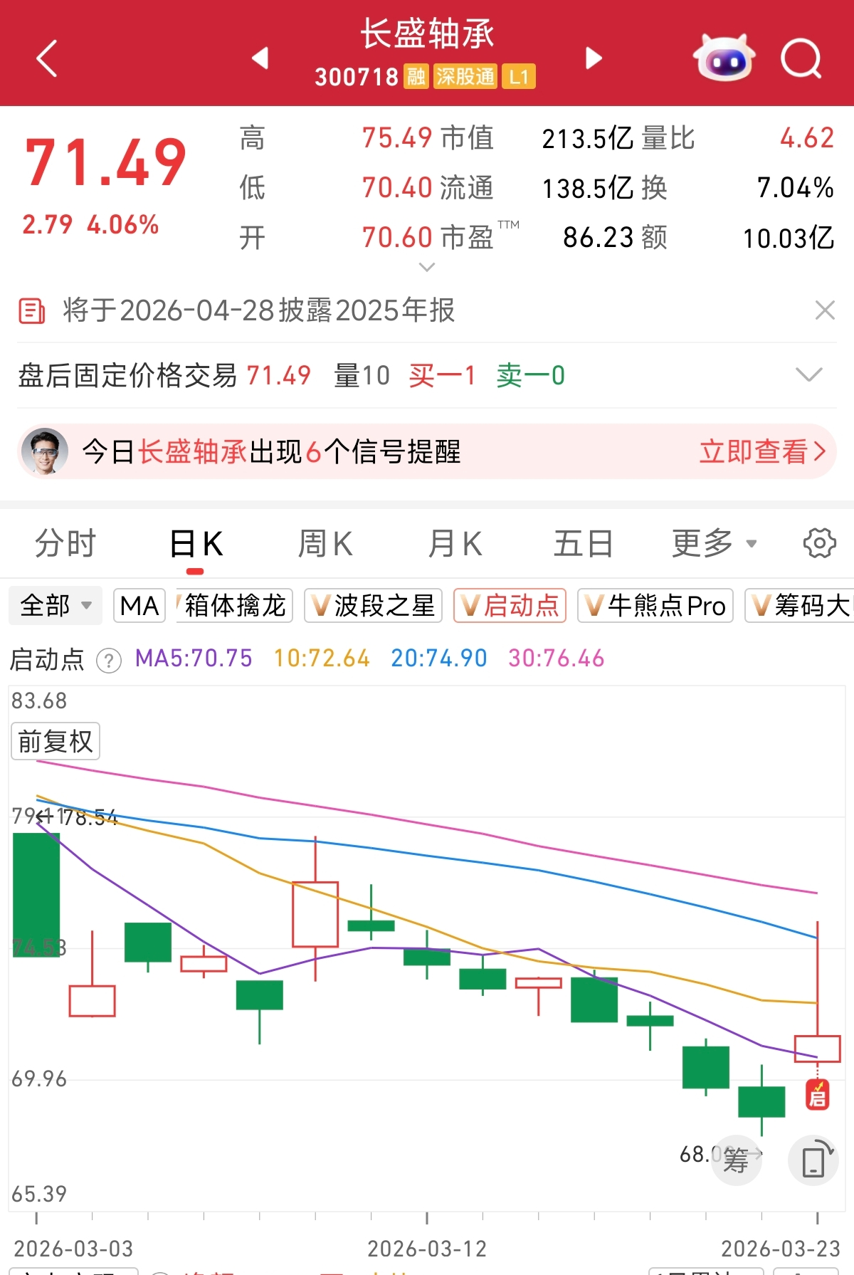 根据启动点监控,机器人概念股长盛轴承,在3月23日出现出现“启”信号,感兴趣的朋友可以自行跟踪判断。