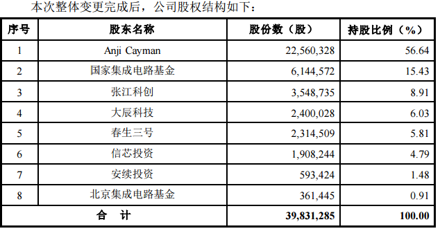 当时,大基金以10880万元入股安集科技股份数614.45万股,并成为安集科技持股比15.43%的第二大股东。
