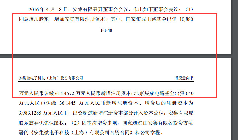 安集科技招股书显示,2016年7月,“大基金”与北京集成电路基金对安集有限增资,增资价格均为17.71元/1元注册资本,增资价格以对安集有限的评估价值为依据,本次增资前安集有限的评估价值为5.88亿元。