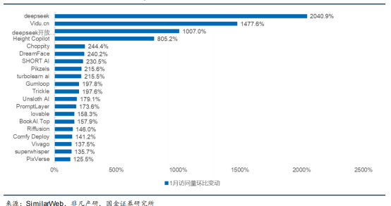 图表1:全球访问量环比增速Top20 AI产品情况