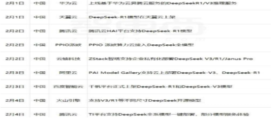图表5:部分支持DeepSeek模型的国内云厂