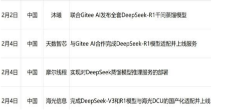 图表7:多家国产AI芯片厂适配DeepSeek模型