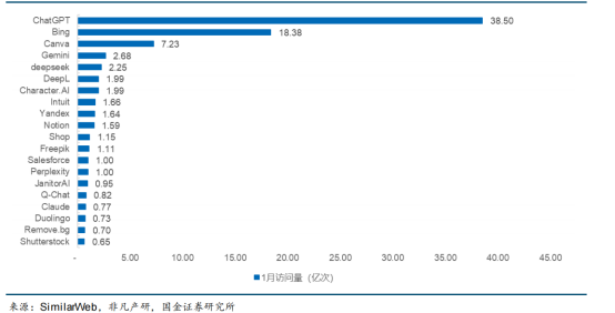 图表2:全球访问量Top20 AI产品排名情况