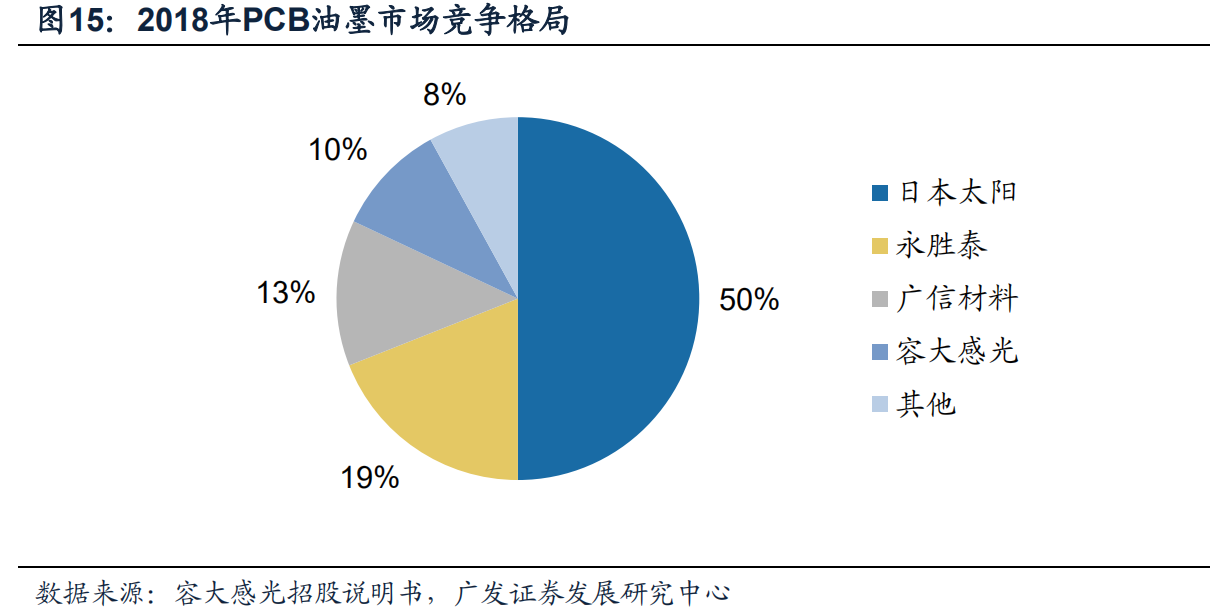 同时外资供应商受运输距离、生产成本高等劣势导致市场占有率逐渐降低。国产品牌性价比优势逐渐凸显,以广信材料和容大感光等为代表的内地PCB油墨供应商逐步发展壮大,相关产品已逐渐进入富士康、深南电路、景旺电子等大型PCB厂商。