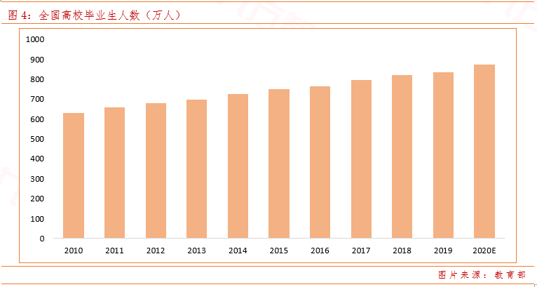 经过数十年的发展,目前中国的教育市场体量已经非常可观,而2020年一波疫情,首先线下教育全面转为线上,侧面为线上教育和教育信息化大幅提速。而疫情之下,企业难,招人意愿减弱叠加2020届高校毕业生规模预计将达到874万人,使得今年的就业压力非常大,扩招就成了环节压力的重要手段。今年以来政策端不断发力,“稳就业、保民生”可以说是今年的主线,因此职业教育同样将大幅收益。