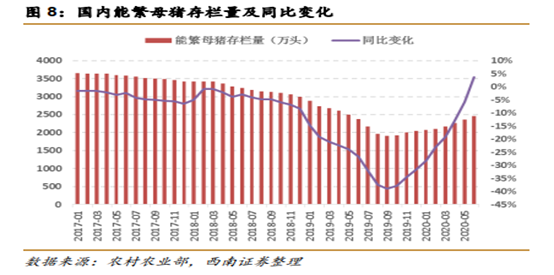 随着国内非洲猪瘟逐步控制,2019年9月以来能繁母猪环比连续正增长,2020年6月能繁母猪存栏同比增长3.6%,更是实现了27个月来的首次同比正增长。预计三、四季度大型养殖集团和规模养殖户继续释放产能,VD3下游饲料需求持续向好。