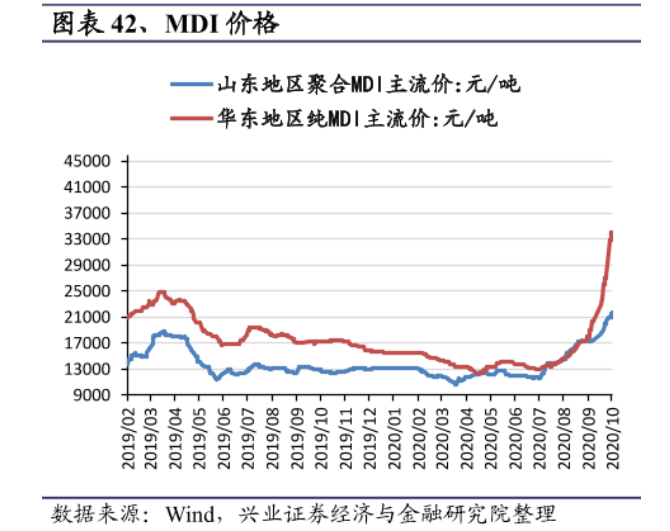 作为国内MDI龙头,万华化学5月以来涨价函密集发布,从5月的13500元/吨到11月的25000元/吨,万华化学将中国地区聚合MDI分销市场挂牌价上调了85%。