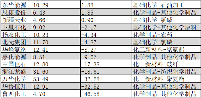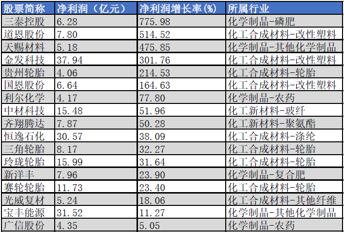 我们整理了当前已经发布三季报的化工个股,由于篇幅有限,在业绩上做了一定的剔除。