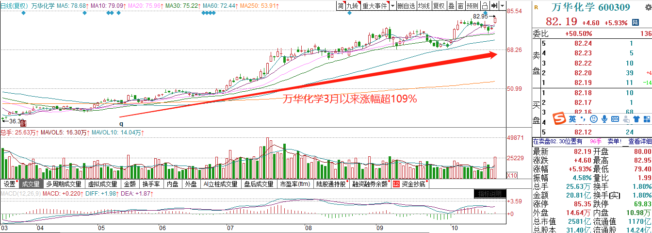 而公司股价也并没有辜负主营产品不断涨价的刺激: