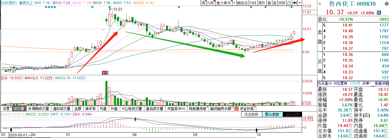 而鲁西化工经过两个多月的调整,近期重回上涨趋势: