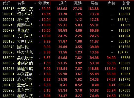 芯片概念今日盘中走势强劲,截至发稿,恒实科技、深科技、闻泰科技、景嘉微、长川科技、大唐电信、国科微、特发信息等涨停。