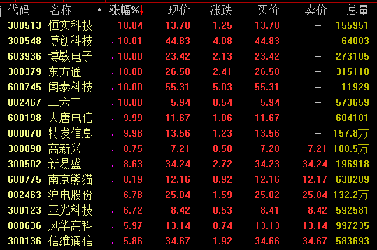 5G概念股今日盘中表现活跃,截至发稿,博创科技、博敏电子、东方通、闻泰科技、二六三、大唐电信、特发信息等涨停,高新兴、新易盛、南京熊猫等涨幅超8%。