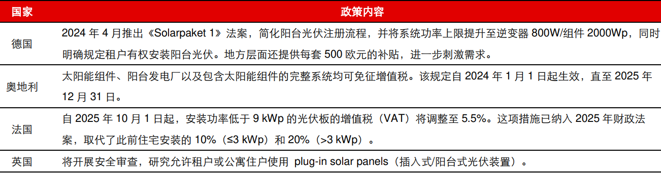 图:代表性欧洲国家针对阳台光储推出的积极政策 |