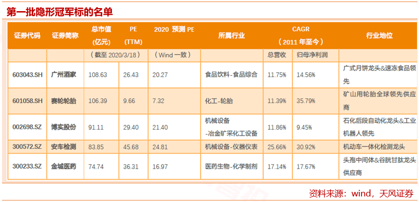 2020.03.25-天风证券-寻找A 股中的“隐形冠军”系列之一:百亿市值中哪些标的被忽略了?