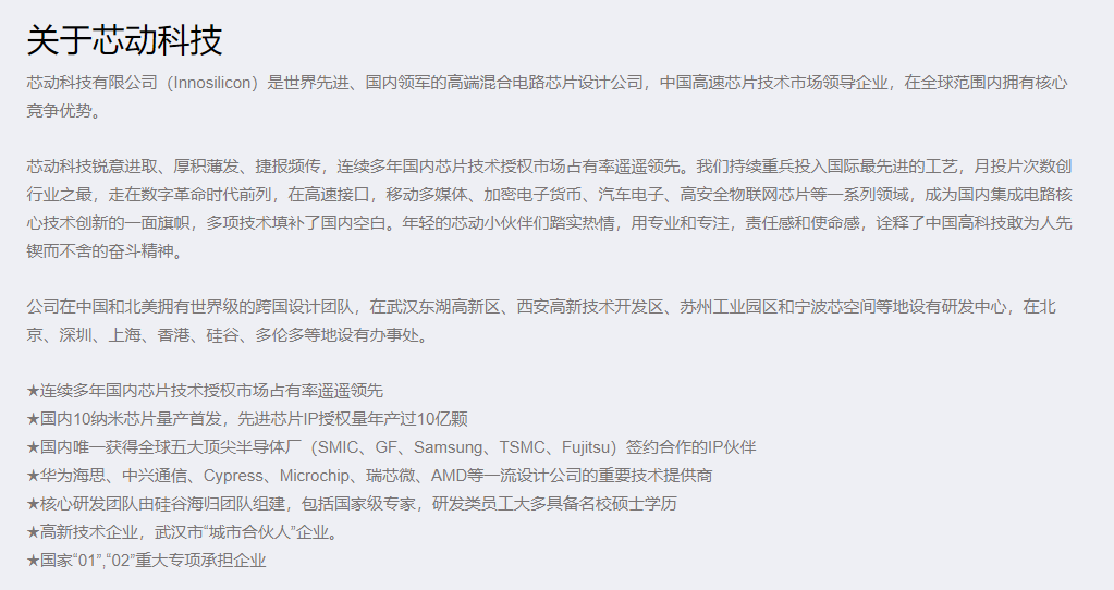 从根据INNOSILICON TECHNOLOGY LTD搜索的资料来看,芯动科技有限公司(Innosilicon)是世界先进、国内领军的高端混合电路芯片设计公司,中国高速芯片技术市场领导企业,在全球范围内拥有核心竞争优势。