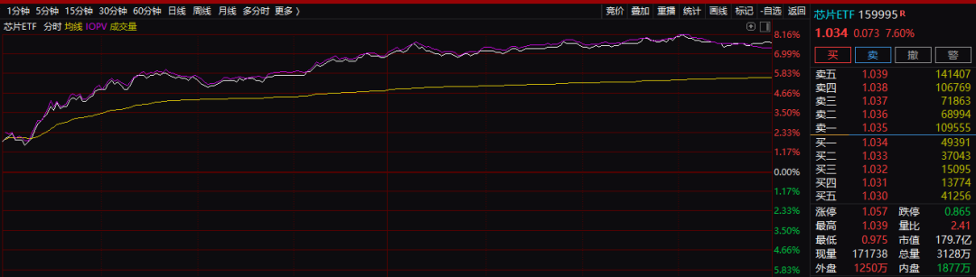 这只股票这么一动,也引领了全天的芯片及半导体行情。芯片ETF当日涨了7.6%,半导体50涨了7.03%。市场一下子好像又回到了去年底和今年二月的“科技牛”行情。