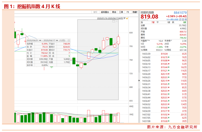 工程机械板块将显著受益基建投资力度提升,挖掘机更是被视作基建“晴雨表”。挖掘机指数4月份以来涨幅超过9%。