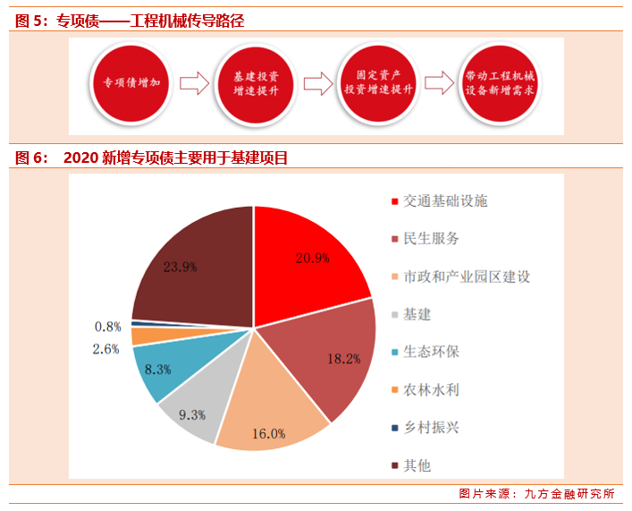 专项债通过固定资产投资传到至工程机械,两者可以视为正相关。