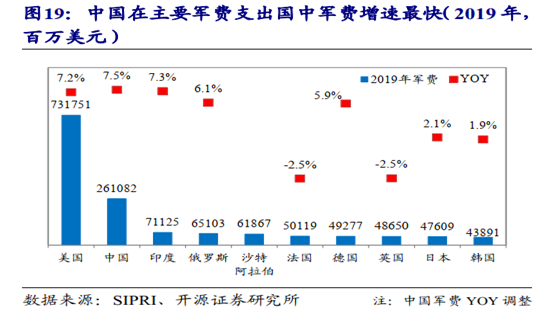 两会召开在即,2020年国防预算即将揭晓。由于中美战略竞争加剧,两国国防预算的增长势头可能将进一步延续。据报道,2019年美国仍是全球军费支出最高的国家,中国军费支出排名全球第二,约占全球全球的14%。