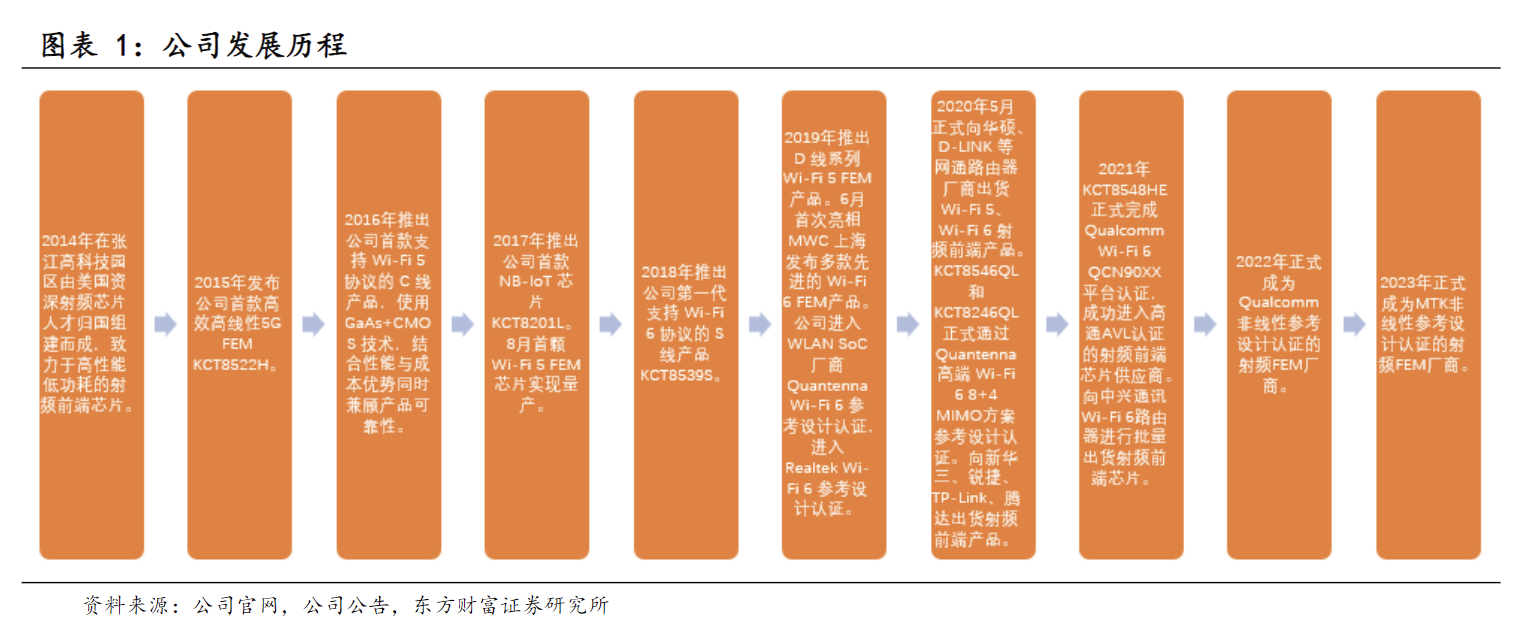 公司主营业务为射频前端芯片及模组的研发、设计与销售,产品广泛应用于无线网络通信设备及物联网领域。