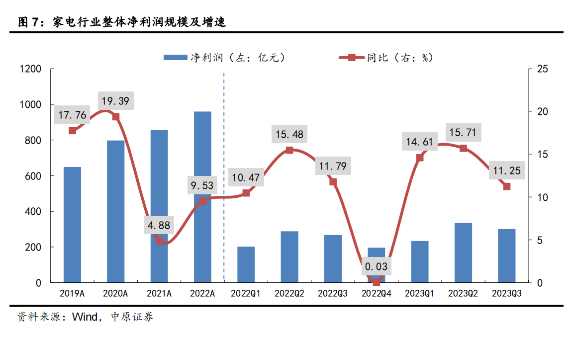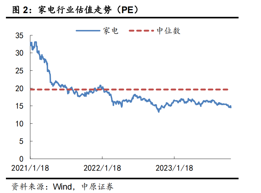 但考虑到行业基本面稳健、各主要竞争赛道的业绩表现以及新兴头部企业的健康发展,预计家电行业的估值有望在短期内经历边际上的修复。