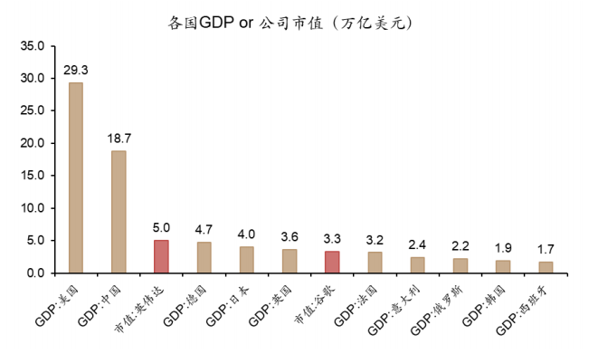 图:AI巨头的市值已经超越日本、法国等发达经济体