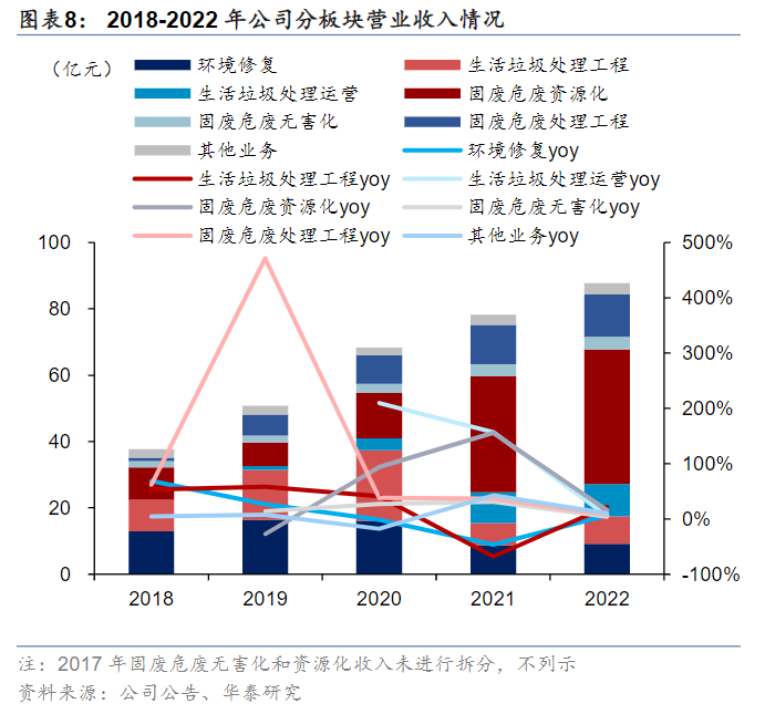 看点一:综合环保服务平台公司固废行业30年沉淀,环境修复起家,逐步扩展产业形成多元化布局,已成长为以固废危废资源化利用、固废危废无害化处置、生活垃圾处理、环境修复等核心业务板块,兼顾废水处理、烟气处理、污泥处置等其他领域协同发展的综合型环保服务平台。