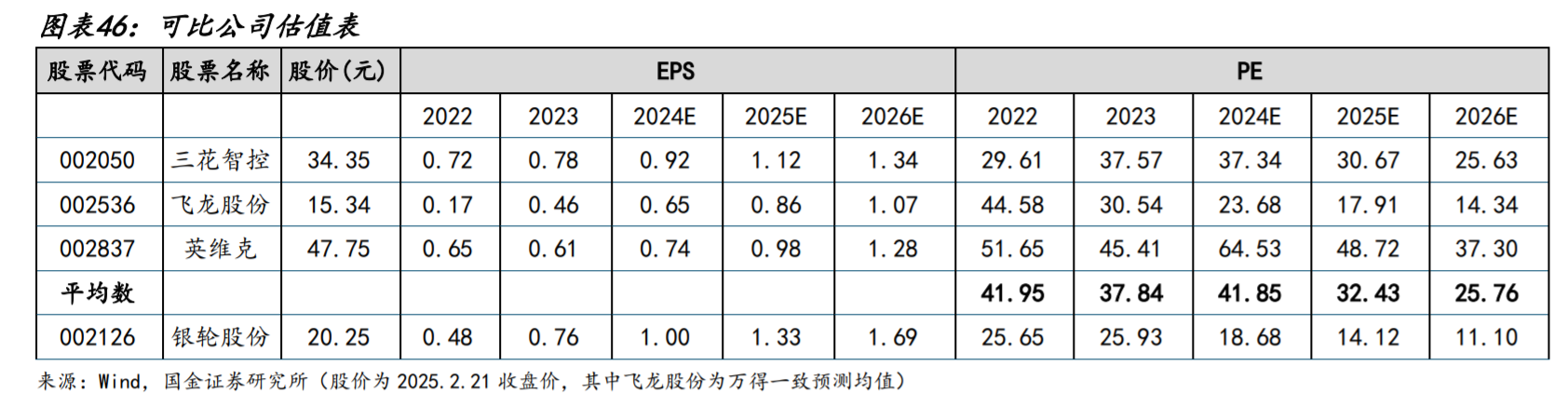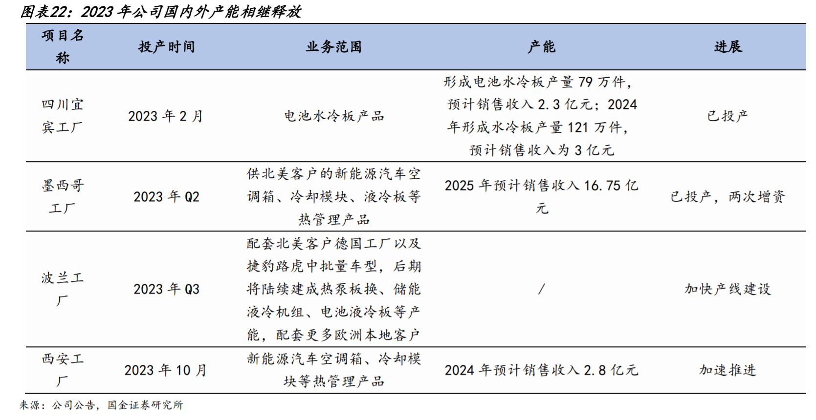 6)数据中心产品包括:外围周边的发电机热管理、提供冷源的冷却塔;内部围绕服务器的机柜CDU(热管理控制分配单元)、ICU(监控数据中心运营状况的热管理系统)以及CPU、GPU芯片液冷板等。目前发电机和冷却塔已开始量产有收入,内部服务器产品还在客户开发阶段,预计今年完成验证开发并拿到定点,财务收入可能要到26年。