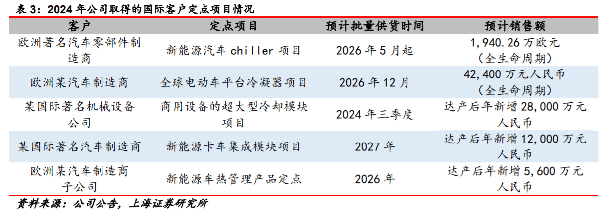 商用车业务渐进复苏,新能源商用车增速稳健提升。国家信息中心预计至2025年,商用车市场有望实现约6.5%的增长,市场规模将回升至410万辆,主要来自大规模的设备更新和消费品的“以旧换新”,其中,据福田汽车预测,新能源商用车2025年销量将达到84万辆甚至更高,同比约+45%。公司在不锈钢油冷器、EGR冷却器、缓速器油冷器等传统产品具有技术领先优势,陆续获得客户项目定点。