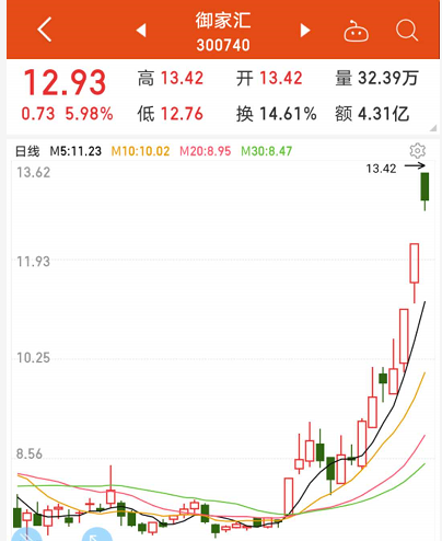 而最近的网红经济概念,近期表现较好的有御家汇,此前两个交易日连续涨停,今天早盘开盘涨停,早盘收盘涨近6%,5月以来累计涨幅超过50%。