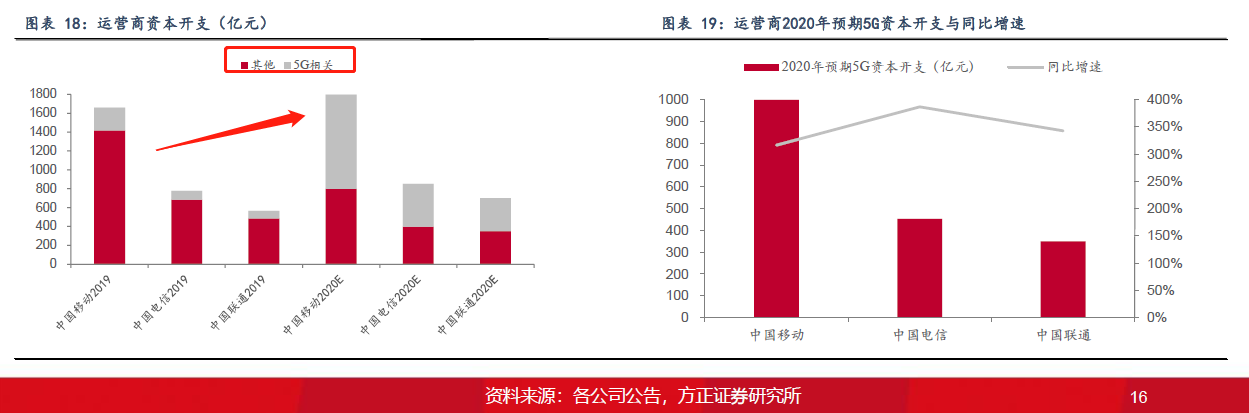 2)运营商大幅扩大5G资本开支,加快5G建设