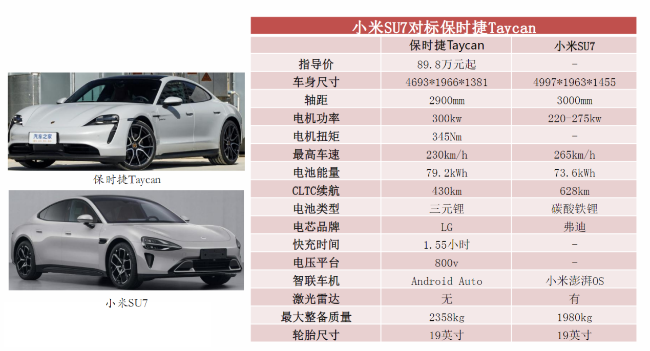 根据申报信息,小米首款车型命名为“SU7”,定位纯电动C级轿车,预计将推出多款车型,分别采用宁德时代三元锂电池和比亚迪磷酸铁锂电池。
