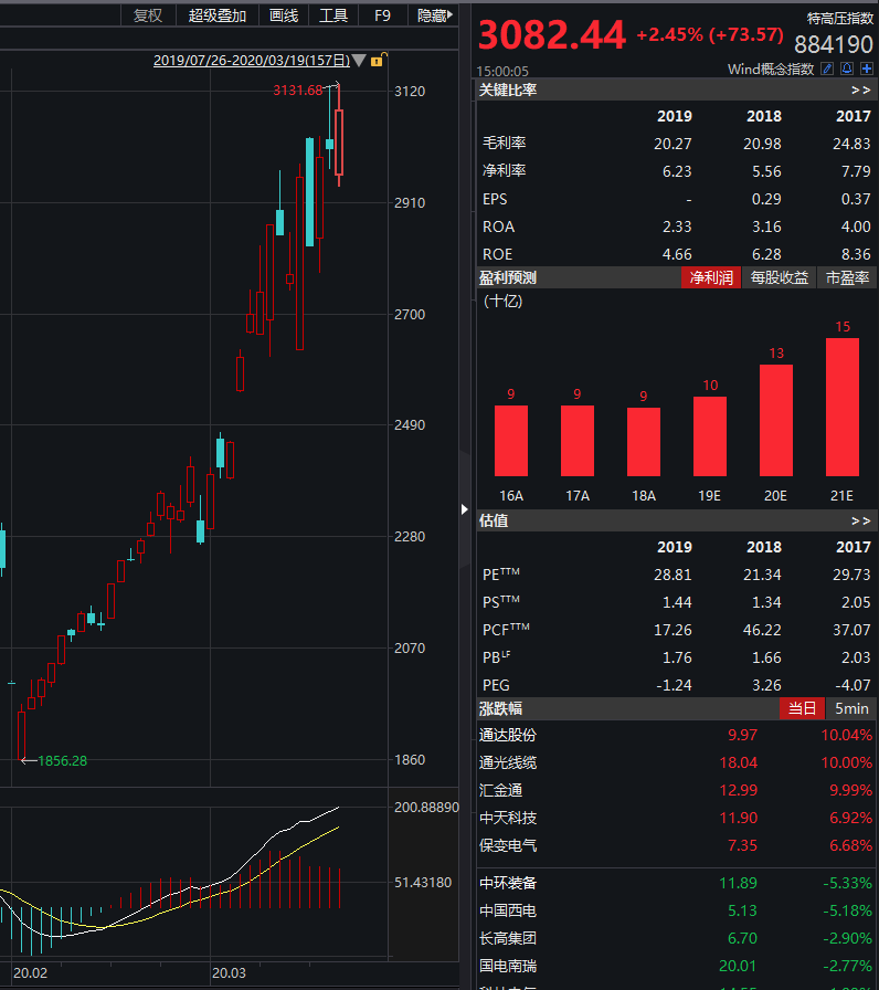 新基建背景下,特高压建设提速。特高压概念股已连续多日走强,今日低开高走,通达股份、通光线缆和汇金通涨停,多股涨幅居前。