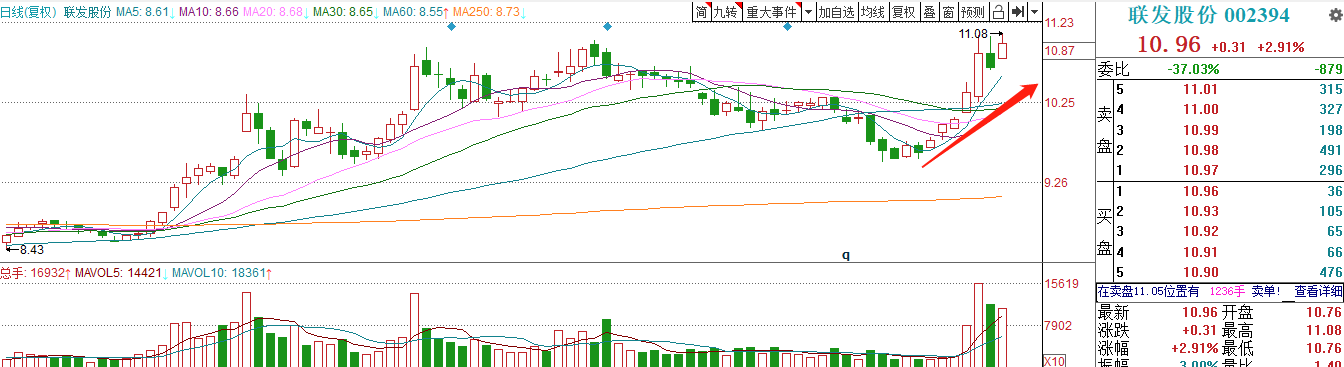 联发股份近期底部起涨近15%:.