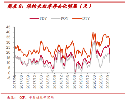 3)化纤行业库存去化明显