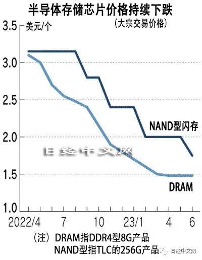 纵观近几个月来DRAM价格走势,据日经报道统计,此前截至2023年4月,DRAM价格连续12个月下滑,作为价格指标的“DDR4 8GB”产品的6月的大宗交易价格比1年前下跌45%。
