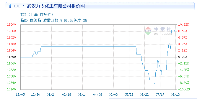 据生意社大宗榜数据显示,近来TDI市场价格走势持续上行,本周华东地区市场均价在12000元/吨以上,涨幅较大。