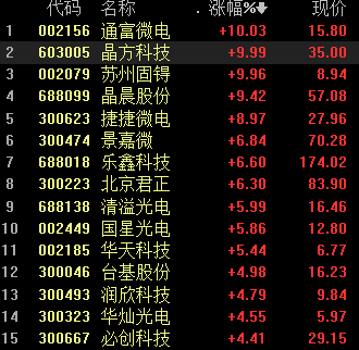 12月10日,芯片概念持续拉升,截至发稿,通富微电、晶方科技、苏州固锝涨停,晶晨股份涨9%,捷捷微电涨8%,景嘉微、北京君正、乐鑫科技等多股纷纷跟涨。
