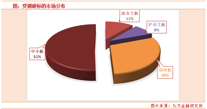 上周(2020.5.30——2020.6.5)共204家机构发起调研,关注到了73家上市公司,超过半数(37家)是中小板上市公司,其次为创业板(22家),深市主板8家,沪市主板6家上市公司收到机构关注。