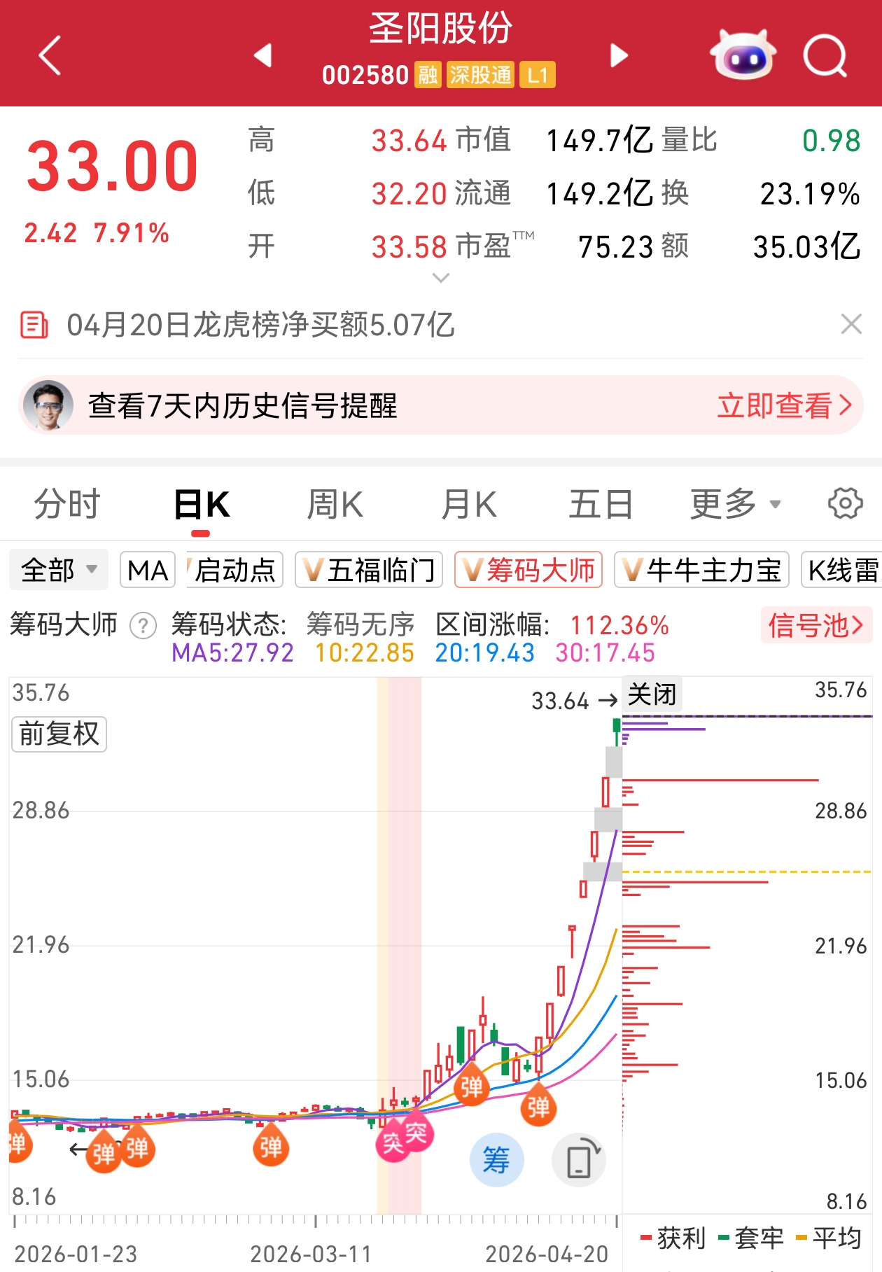小九注:公司公告称,公司股票于4月21日停牌一天,4月22日复牌起被实施退市风险警示,股票简称由“明德生物”变更为“*ST明德”,日涨跌幅限制为5%。根据公司《2025年年度报告》,公司2025年度利润总额为亏损6379.40万元,归属于上市公司股东的净利润为亏损1646.07万元,归属于上市公司股东的扣除非经常性损益后的净利润为亏损1.17亿元,营业收入为2.65亿元,扣除后的营业收入为2.41亿。根据相关规定,公司2025年度财务指标触及“最近一个会计年度经审计的利润总额、净利润,扣除非经常性损益后的净利润三者孰低为负值,且扣除后的营业收入低于3亿元”的情形,深圳证券交易所对公司股票交易实施退市风险警示。若公司2026年度出现上述情形,深圳证券交易所将决定公司股票终止上市。