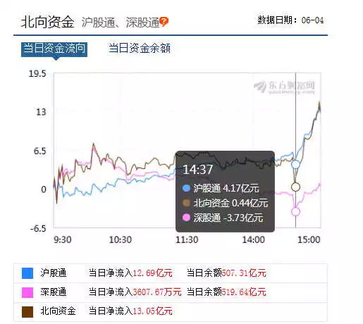昨日北向资金尾盘再次出现异常情况,北向资金尾盘再次大幅净流入现象,截至收盘时,北向资金净流入额攀升至10.63亿元,其中,沪股通净流入11.38,深股通净流出-0.75亿元。也就意味着在尾盘期间,北向资金净流入额超过10亿元。