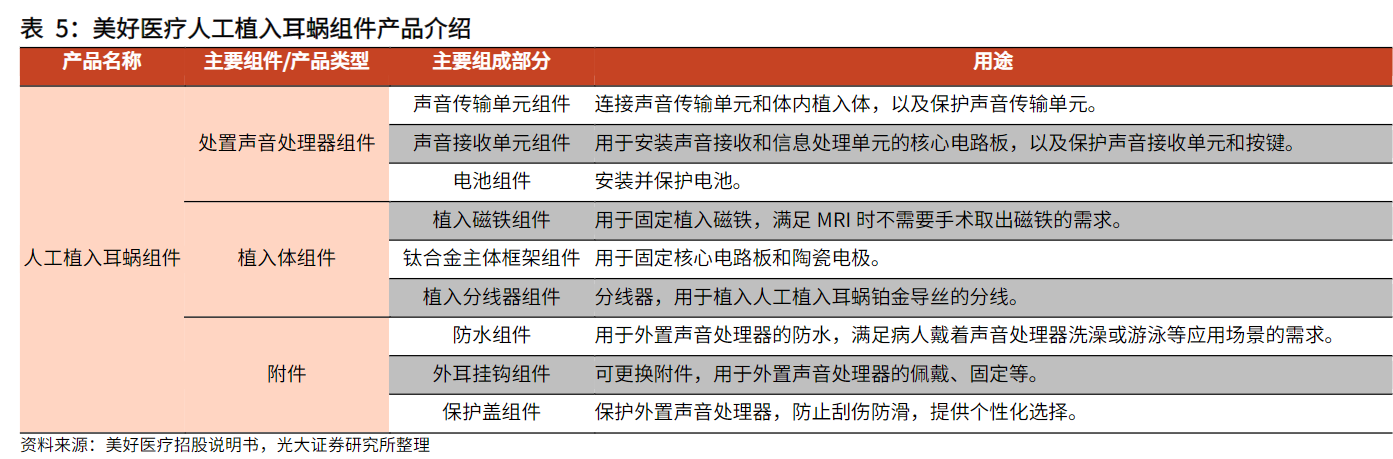 公司人工耳蜗组件生产业务处于行业中上游,行业集中度较高。全球人工植入耳蜗行业技术门槛高,市场集中度高,生产商主要为科利耳、领先仿生和美迪乐,人工植入耳蜗组件主要包含外置声音处理器组件、植入体组件和附件等。其中外置声音处理器组件的主要技术包含多组份多材料精密成型技术和精密液态硅胶成型技术;植入体组件的主要技术包含植入PEEK高温精密注塑成型技术、钛合金精密加工技术和钛合金表面处理技术。