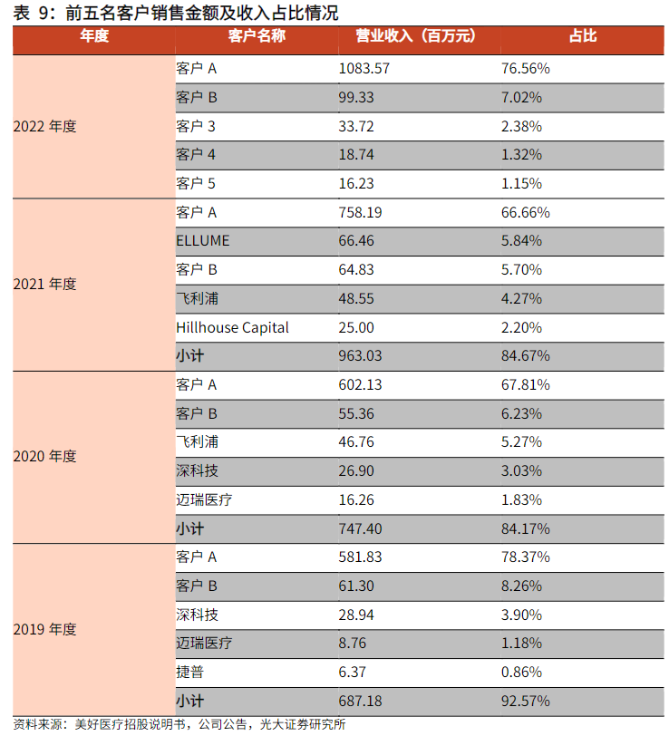 美好医疗的客户集中度较高,与主要客户建立了长期稳固合作关系,主要客户是医疗器械行业知名厂商,与主要客户的合作具有稳定性和可持续性,且并不会影响公司的持续经营能力。此外不断拓展新客户和业务,继而使得公司对主要客户的依赖程度降低。