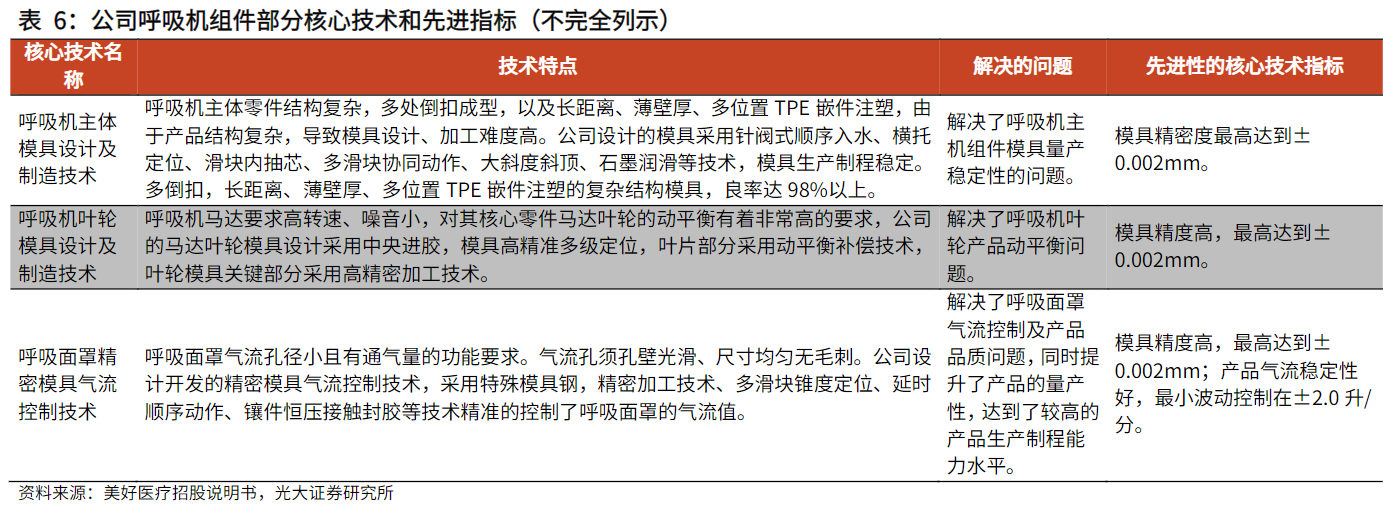 研报菌简评:公司拥有呼吸机主机组件组装测试及追溯技术、呼吸机湿化器水箱防渗漏技术等呼吸机主机组件领域核心技术,在行业中保持领先水平。