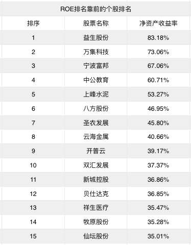 A股市场共有136家公司年报净资产收益率在20%及以上,其中15家公司净资产收益率均超35%。