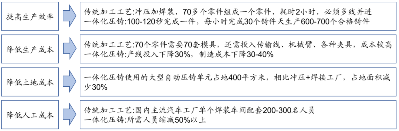 一体化压铸、高压压铸、冲焊全面布局。